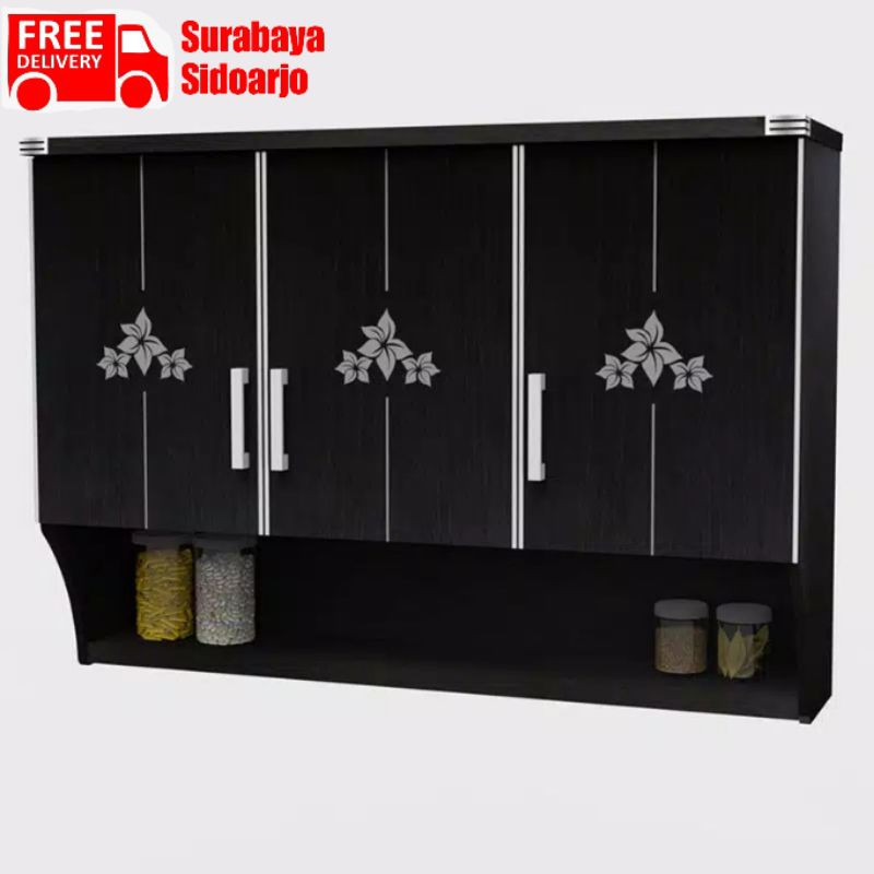 Jual Jasmine Lemari Dapur Kitchen Set Atas Gantung 3 Pintu Hitam Motif Bunga Surabaya Sidoarjo Indonesia Shopee Indonesia