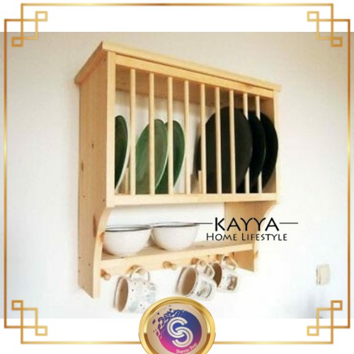 Rak Piring Kayu Kv118 Kayya Rak Piring Gantung Minimalis Rak Piring Jumbo Bahan Kayu Pinus Rak