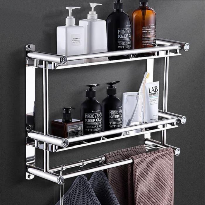 Jual Rak Kamar Mandi Rak Handuk Rak Dinding Tempel 2 Tingkat Rak Stainless Silver Di Seller Flowers16 Indonesia Blibli