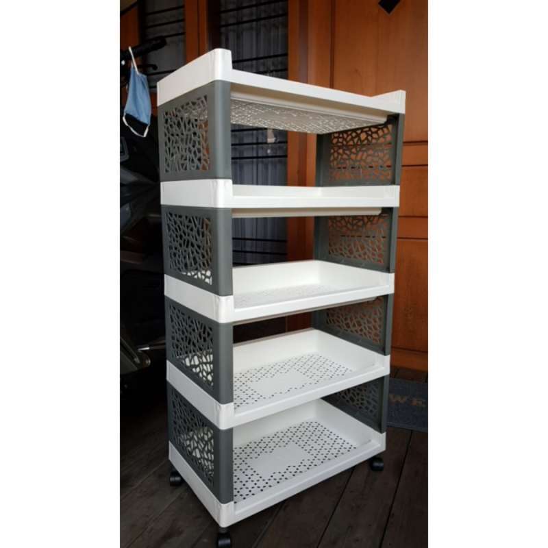 Jual Rak Plastik Serbaguna Susun 5 Besar Roda Abu Abu Shopee Indonesia