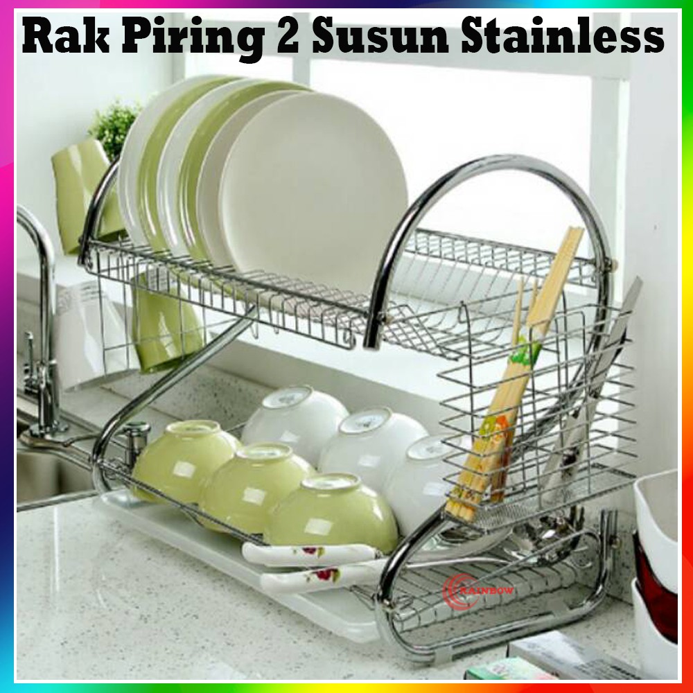 Jual Rak Piring Stainless 2 Susun Tingkat Anti Karat Peralatan Dapur Minimalis Shopee Indonesia